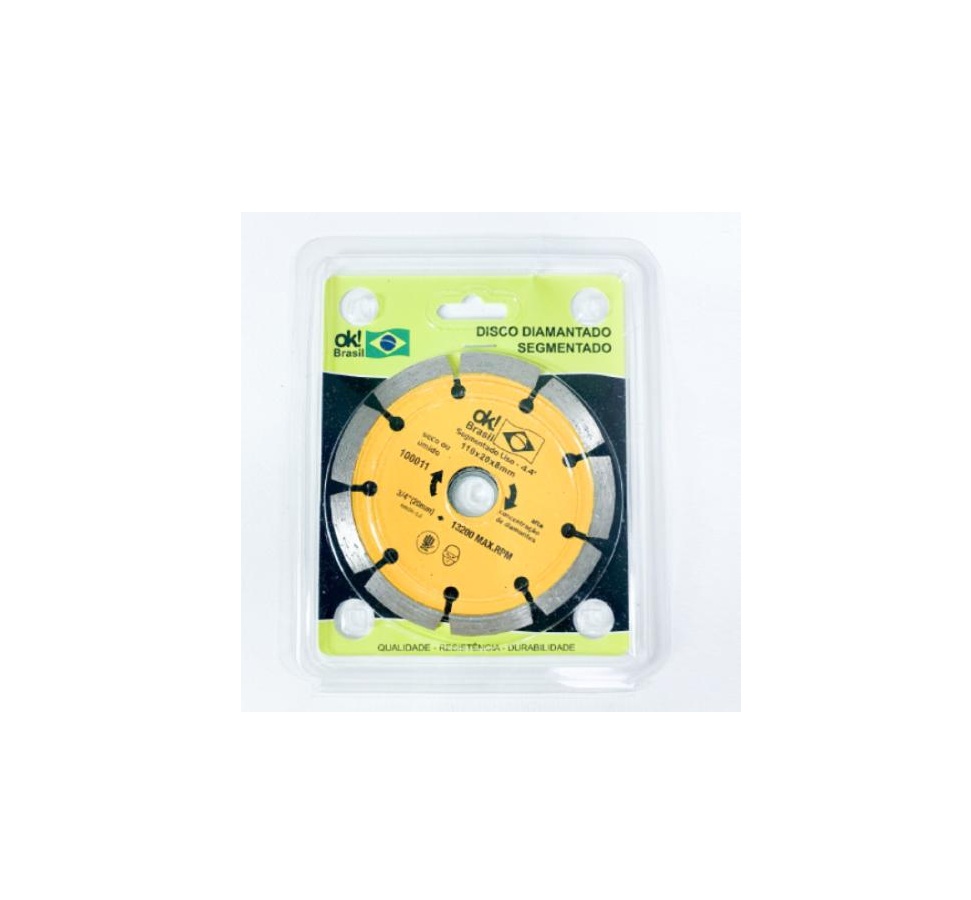 O Disco Diamantado Segmentado OK Brasil é a ferramenta ideal para cortes rápidos e eficientes em materiais de construção robustos. Projetado com segmentos de diamante de alta qualidade, ele oferece desempenho superior e durabilidade, tornando-o perfeito para cortar alvenaria, concreto, telhas e blocos. Sua tecnologia de corte segmentado garante um bom resfriamento durante o uso, aumentando a vida útil do disco e proporcionando cortes mais seguros. Se você precisa de um disco confiável e potente para seus projetos de construção ou reforma, o OK Brasil é a escolha certa.