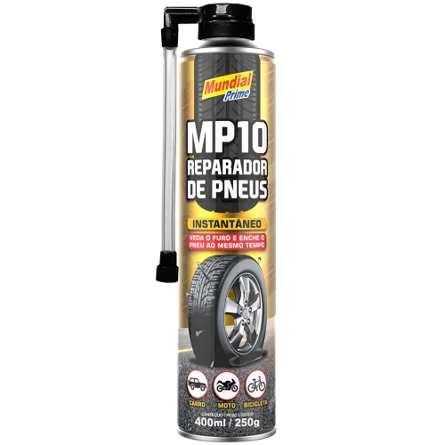 À base de látex, não danifica pneus, câmaras ou válvulas. Permite a utilização por centenas de quilômetros antes que o reparo convencional seja feito no pneu. O recipiente resiste a impacto.