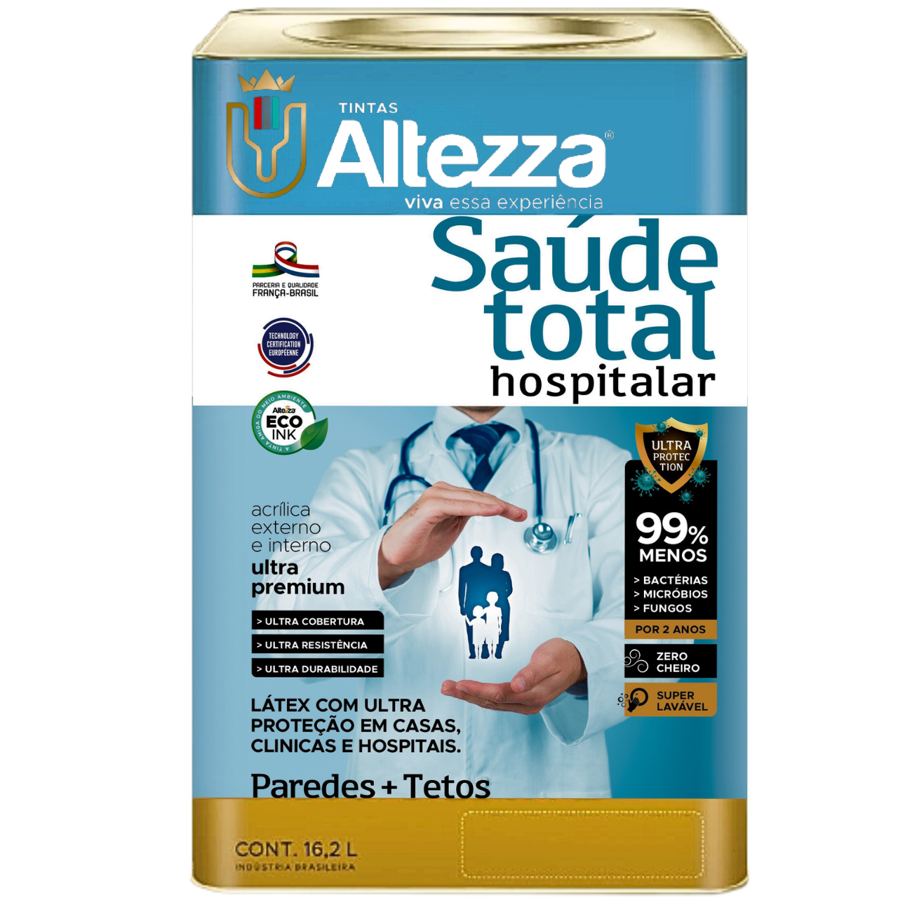 Saúde Total é o creme de pintura da Altezza indicada para Clínicas e consultórios, Hospitais e Laboratórios, Academias e residências. Um produto com alta cobertura que não deixa cheiro depois de secar. Seu acabamento especial e sua excelente resistência oferecem mais proteção e fácil limpeza.