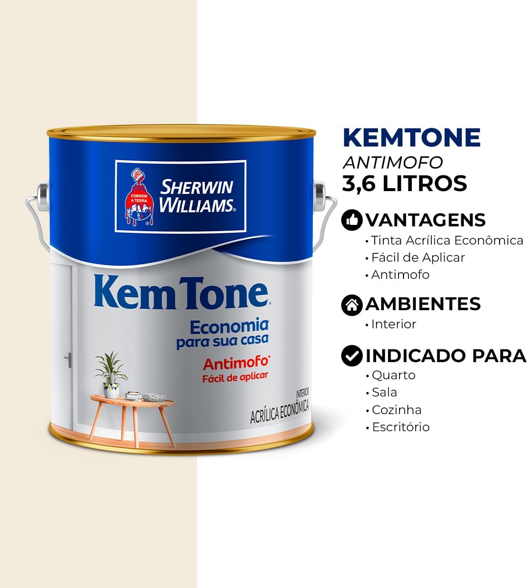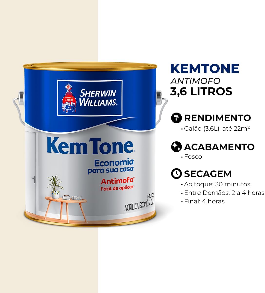 Tinta Acrílica Fosco KemTone Branco 3,6l – Sherwin Williams